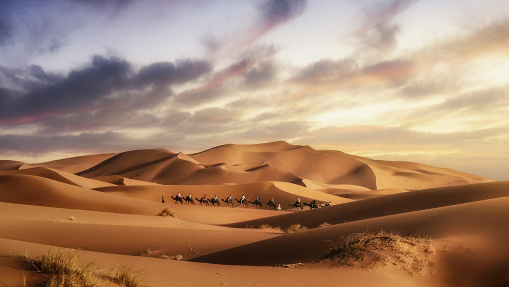 - Experience a camel trek and desert camp in Merzouga