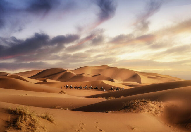 Enjoy a sunrise camel ride, return to Merzouga village, and travel to Ouarzazate for an overnight stay.